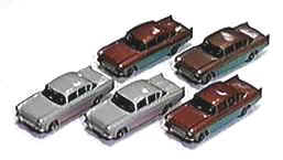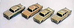 The pink/gray was the only two-tone model found with both gray and silver plastic wheels. During the last 3 years of its seven year run the model was given a single-color metallic flake paint scheme: light gold, dark gold, & finally copper. There are intermediate shades ranging to a golden bronze or even darker, & two gold colors ranging from light gold to a brilliant honey-orange gold. The honey-orange gold in the States is comparatively scarce. If anyone has had success locating a gold Cresta (any shade) with gpw we'd be interested in hearing from you. The single-color model in bronze is the only time that the model appeared with black wheels, & as Lesney's production increased in the early to mid 1960's, there were comparatively large numbers of the black wheel variant produced, especially with the fine black wheels (36 treads).