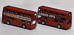 These are not regular wheels, but I [Ethan] am posting it so it does not vanish as George, the Virtual Collector, is ceasing his pages. Information as it appeared on George's pages [with modification], prepared by fellow Matchbox collector Bob Neumann with his own remarkable knowledge of Matchbox and using references from: (1) the "Superfast Range" Chapter (authored by Paul Carr) of McGimpsey-Orr's Collecting Matchbox -- The First 40 Years; (2) U.K. Matchbox Journals; (3) & conversations with Charlie. MB-17 rare limited edition promotional models. Traditional double-decker bus known as "The Londoner" cast in 1:121 scale and based on the Daimler Fleetline D.M.S. supplied to London Transport. The body work on the real vehicle was done by Metro-Cammell and Park Royal. The "CAMCEL Takes You Places" labels used on the model (left) are red and black letters on a white background. It was distributed through the Watford, England distribution branch in 1976. The same bus casting (right) with rare limited edition promotional labels of "ILFORD HP5 FILM" in white letters on a black background, also manufactured and distributed in 1976.