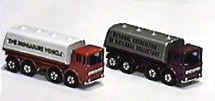 In 1972, two specially colored MB-32 Leyland Tankers were produced for a membership promotion for the Adult "Matchbox" club "National Association of Matchbox Collectors (NAMC)". The club was headed up by Bob Brennen and is no longer in existence. This casting of the MB-32 Leyland Tanker was originally sold with black plastic "regular" wheels until the changeover to Superfast wheels which included this model. The Superfast-wheeled Leyland Tanker is most commonly found with Green Cab and White Tank with "BP" labels, and a rare version has a blue cab and white tank with "ARAL" labels produced for the German market. The "NAMC" promotional tankers are by far the hardest to find and were manufactured by Lesney, first with a metallic purple cab and silver tank, and a later production run had a red cab and white tank. The purple and silver tankers were shipped to the NAMC club without labels. At this point the labels on the tank sides were applied by the staff at NAMC and mailed out to NAMC members who satisfied the promotional requirements.