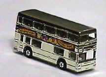 Lesney included this model as part of their "Giftware" range in the 1970's. The "Giftware" range is mostly noted for including gold and silver vacuum plated Models of Yesteryear with special mounting holes in the base plates designed to allow them to be screw-fitted as decorations on ashtrays, cigarette boxes, etc. The Superfast "Londoner" Bus was also included in the range for a very short time and is now very hard to find. The bus was available in either chrome or gold vacuum plating with either "Swinging London-Carnaby Street" labels as shown or with "Berger Paints" labels. The baseplate had two large bosses cast that facilitated the use of mounting screws. Some of these base plates have been found on standard issue red painted production models.