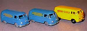 Matchbox 34A left and center, Duplo on right. Photo from John Dean's collection,