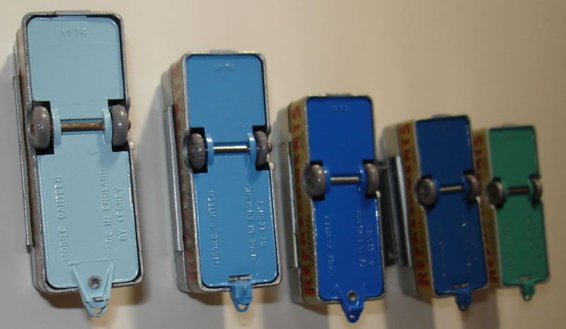 comparison of base colors, left to right: pale blue, light blue, mid blue, dark blue, aqua