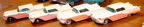 3. pinkish cream body, blue base & interior, gray plastic wheels