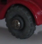 George, the Virtual Collector's 43A2 Hillman has early (darker) gray plastic wheels & crimped axles. Some collectors call this (CA-gpw) combination "transitional" in the early regular wheel series because relatively few such models were produced. In 1958, shortly after changing wheels from metal to plastic, Lesney began to rivet (round over) the free end of axles in the process of fitting the wheels instead of crimping them.
